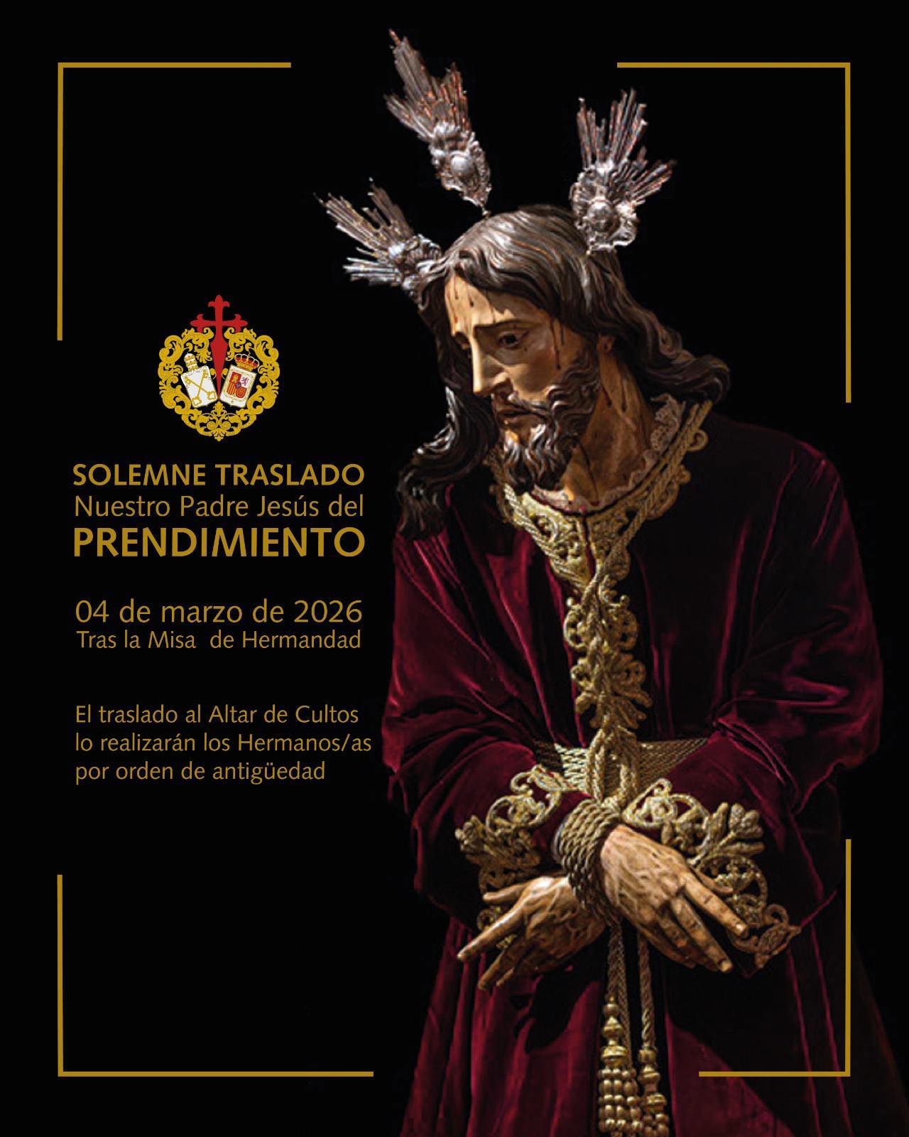 - Solemne traslado del Señor del Prendimiento al altar de cultos este miércoles