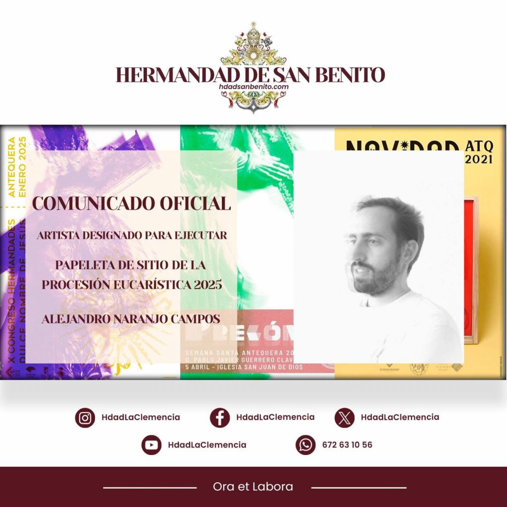 La Hermandad de La Clemencia ha designado al artista Alejandro Naranjo Campos como encargado de realizar tanto la Papeleta de Sitio como el Cartel anunciador del Corpus 2025, dos elementos que cobrarán especial relevancia en esta próxima edición de la festividad.