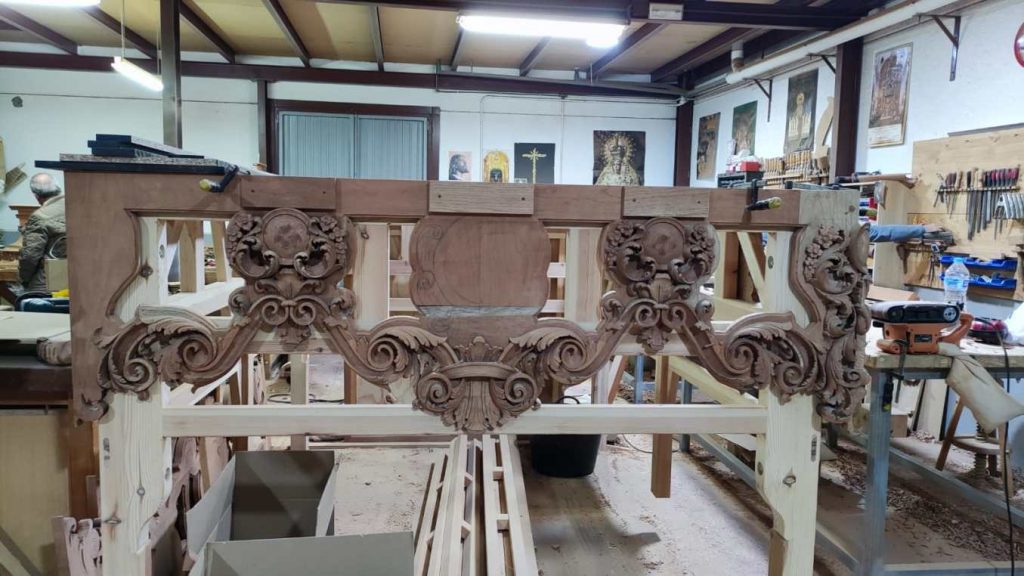 Ayer, miércoles 19 de enero, la comisión encargada cursó visita al taller de D. Manuel Oliva para supervisar cómo avanzan los trabajos de talla de nuevo paso para el Santísimo. Según pudieron observar, los trabajos están muy avanzados como se muestra en las fotos, el frontal delantero está listo en un 90% y el costero va avanzado en un 50, las cartelas de las esquinas están terminadas así como todas las cartelas pequeñas.