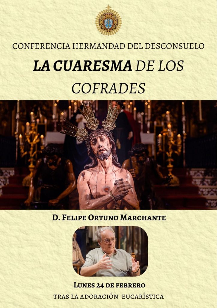 El próximo lunes 24 de febrero, la Hermandad de los Judios de San Mateo, tendrá el honor de recibir al Padre Felipe Ortuno Marchante, quien impartirá una conferencia titulada "La Cuaresma de los Cofrades".