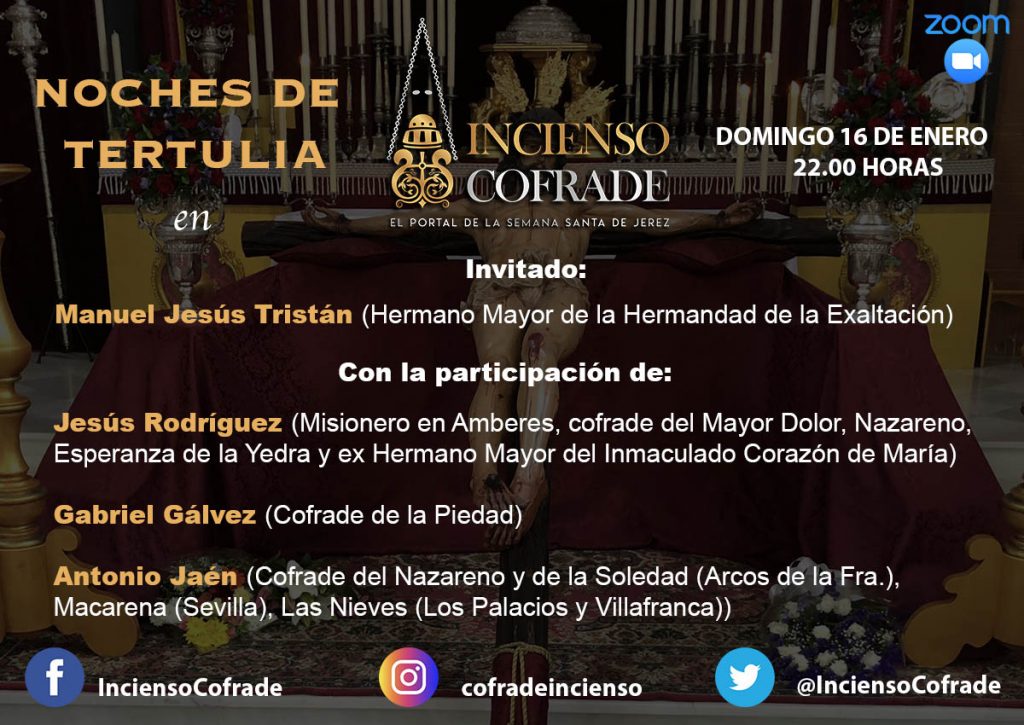 Para nuestra segunda tertulia, contaremos Manuel Jesús Tristán, Hermano Mayor de la Hermandad de la Exaltación, cofrade del Perdón y capataz de del Santísimo Cristo de la Exaltación y de Nuestro Señor del Ecce Homo.