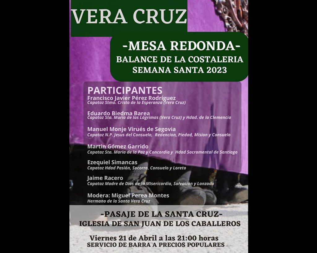 Este viernes día 21, a partir de las nueve de la noche, en el Pasaje de la Santa Cruz, junto a la Iglesia de San Juan de los Caballeros, la Hermandad de la Santa Vera Cruz, ha organizado una mesa redonda sobre costalería.