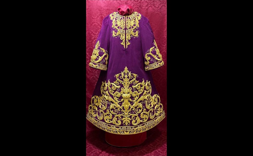 Aunque el diseño tiene elementos barrocos y renacentistas, algunos detalles son más novedosos, aunque propios de las primeras décadas del siglo XX en que la túnica se inspira. Así, en el cuello, en las mangas y en el remate inferior hay una amplia greca romana con influencia de «art-déco»