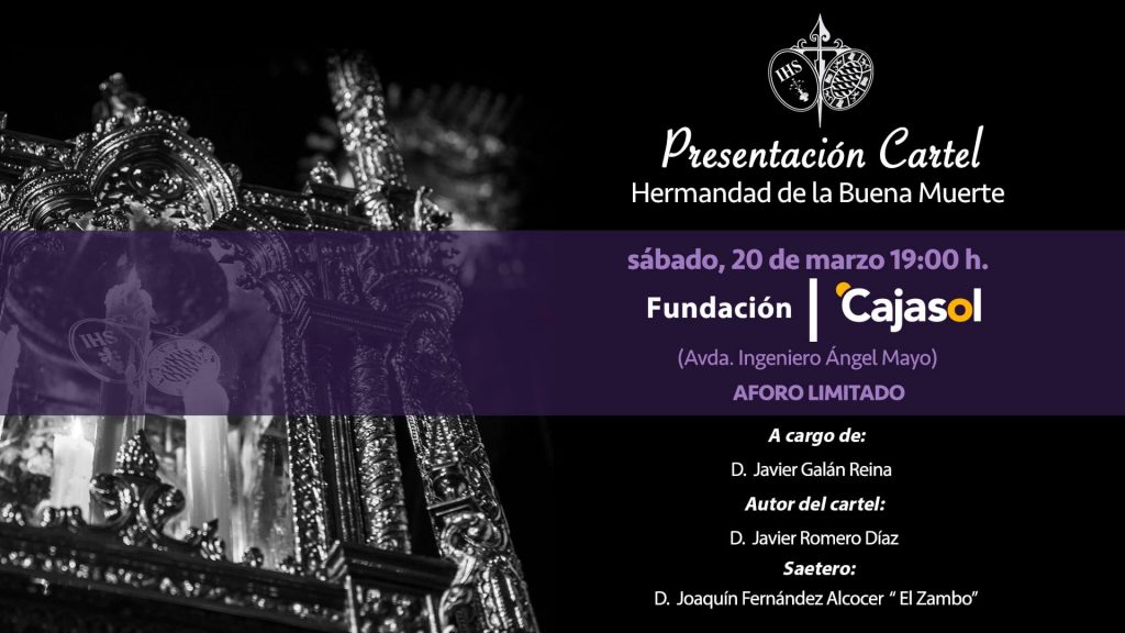 El próximo sábado día 20 de marzo, a las 19:00 horas, el Teatro Cajasol acogerá la presentación del cartel de Semana Santa que edita la Hermandad de la Buena Muerte y que ha realizado el fotógrafo Javier Romero Díaz.
