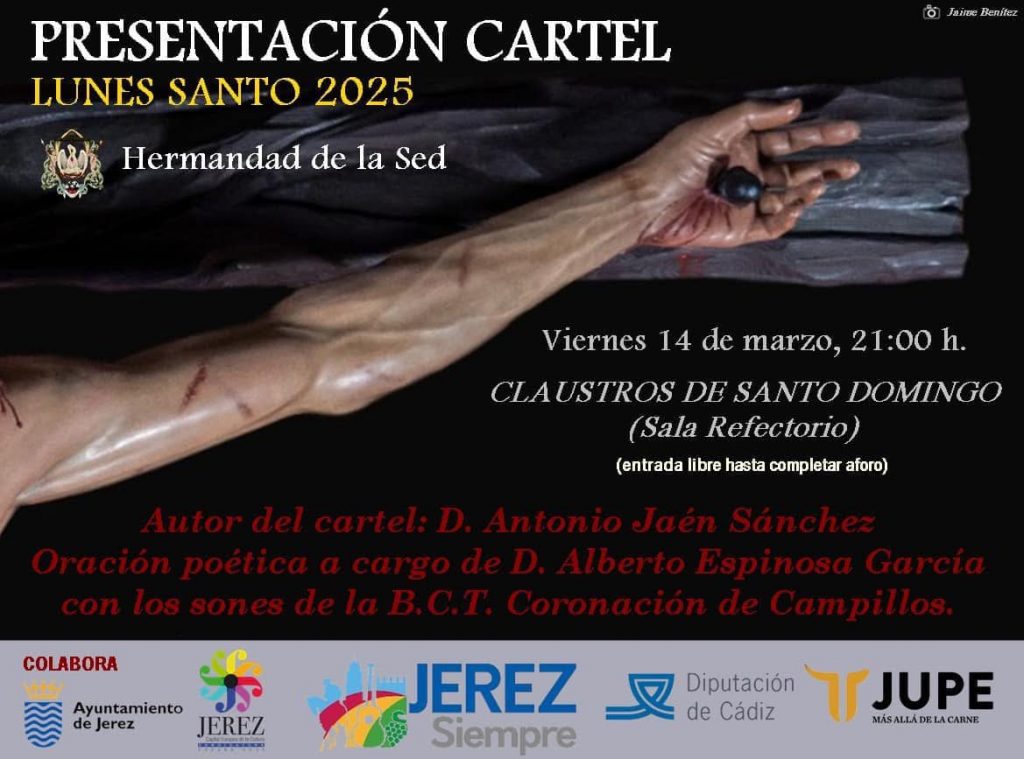 La Hermandad de la Sed ha anunciado por su redes sociales, que el próximo viernes 14 de marzo a las 21.00 horas, tendrá lugar la presentación del cartel, obra de D. Antonio Jaén Sánchez.