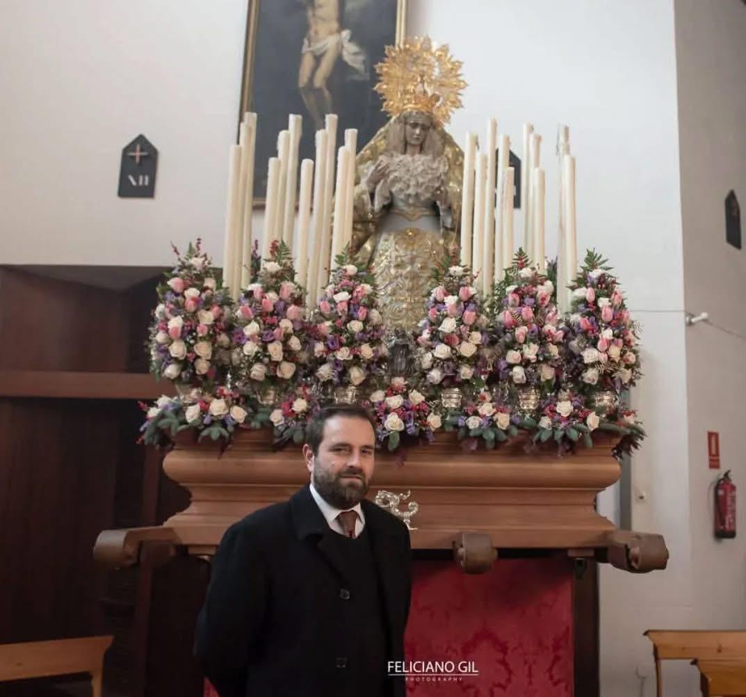 Es mayordomo de la hermandad del Transporte y de la Merced, Patrona de Jerez.