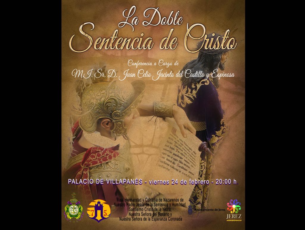 Dicha conferencia tendrá como título "La Doble Sentencia de Cristo", tendrá lugar en el Palacio de Villapanés a las 20.00 horas y contará con D. Juan Celio Jacinto del Castillo y Espinosa, párroco de Nuestra Señora de Fátima, licenciado en Teología Bíblica y profesor del ITSJA.